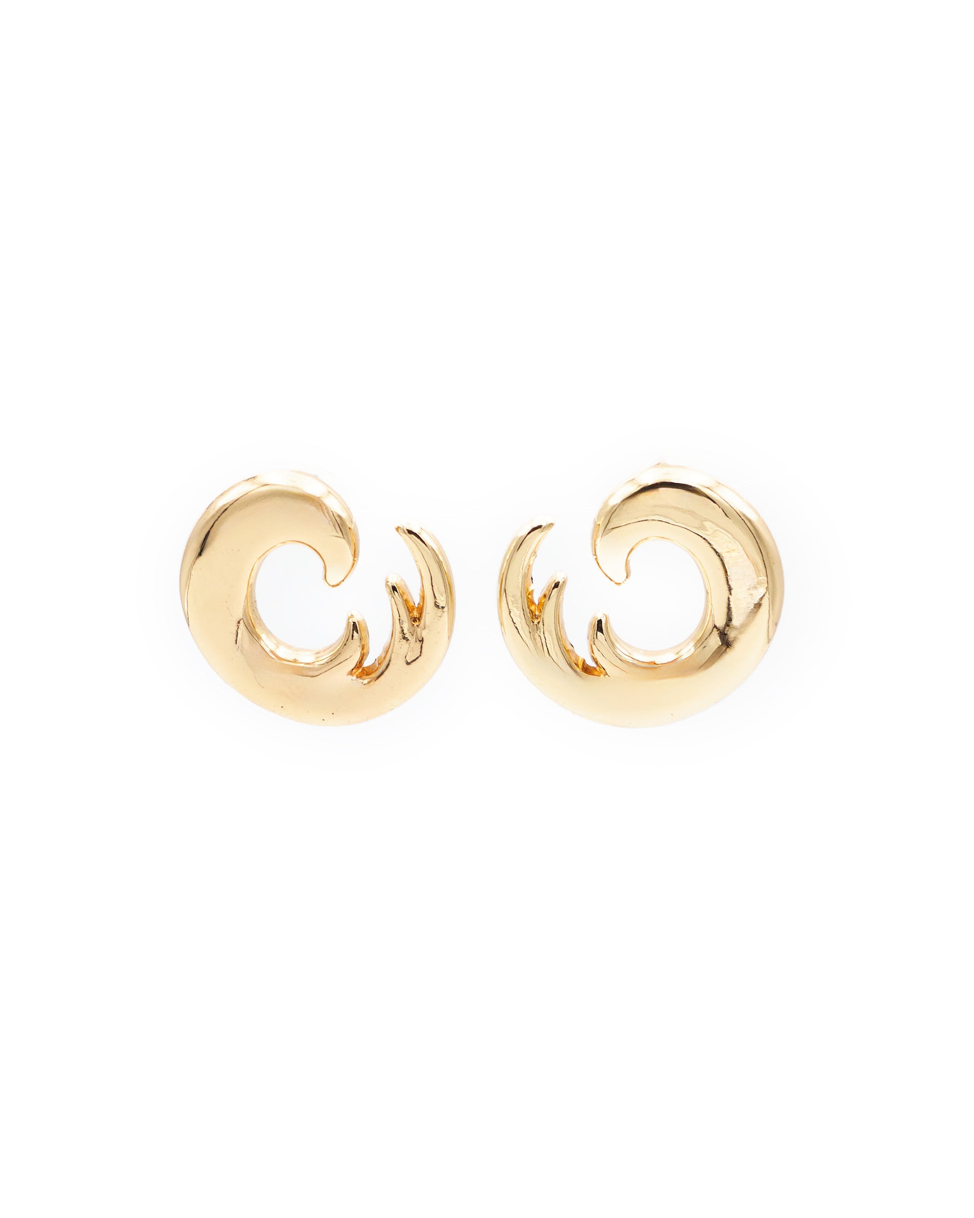 Sculptural and bold, these glossy gold earrings swirl like little waves or flames — fierce, fun, and full of movement. Your go-to for a golden statement with a twist.